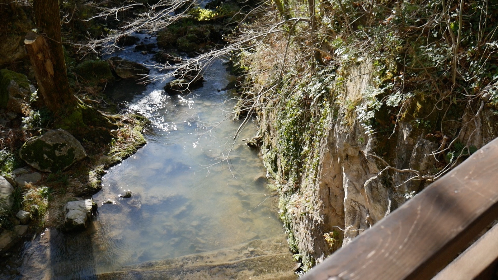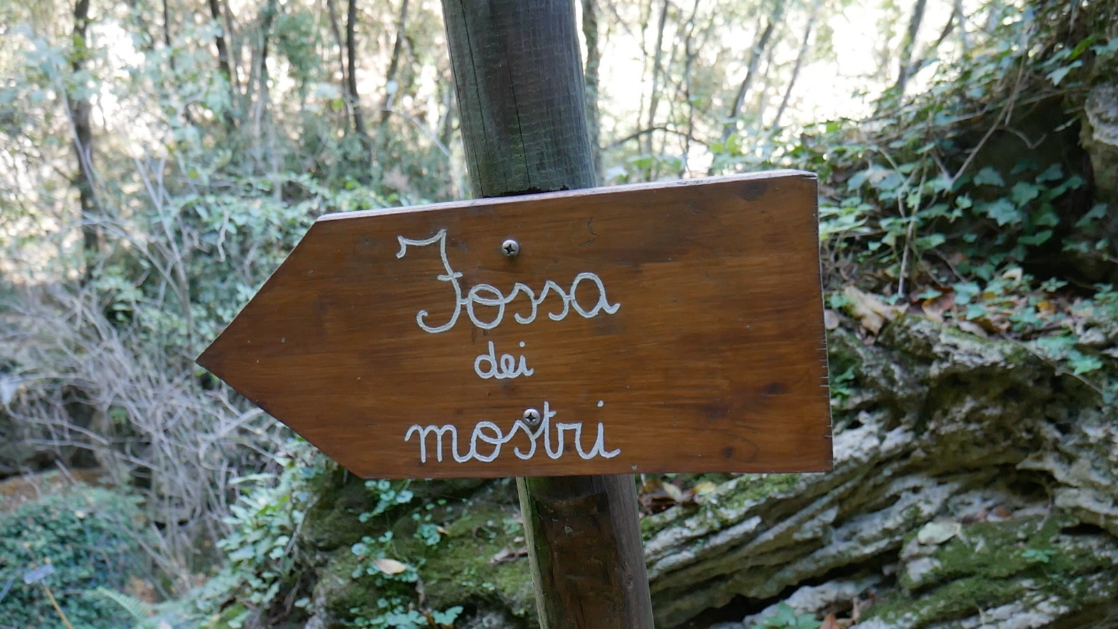 Una delle sorprese lungo il sentiero è la cosiddetta Fossa dei Mostri, una piccola radura naturale accanto al fiume dove l’artista locale Antonio Ciccarelli ha scolpito enormi e grottesche facce di “mostri” direttamente sulla roccia. Queste sculture, che emergono tra le pareti di travertino e la vegetazione, trasformano il luogo in una sorta di galleria naturale, capace di affascinare grandi e piccoli durante la passeggiata.