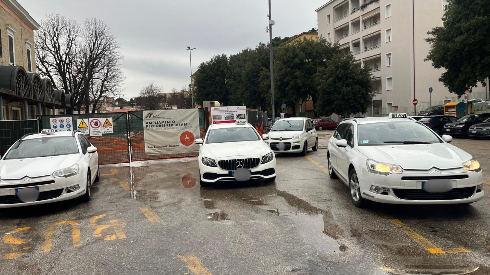 I nuovi stalli per i taxi alla stazione scontentano tutti, caos parcheggi: a Macerata c'è lavoro per Scorsese (FOTO)