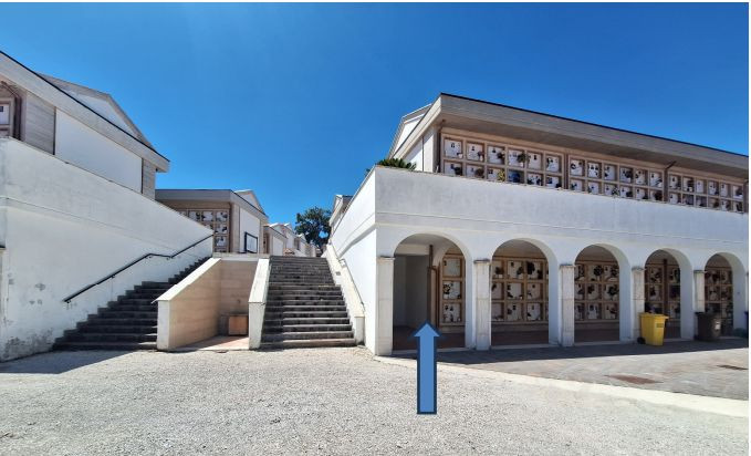 I gabinetti attualmente disponibili sono distribuiti in maniera tale da coprire i vari settori del cimitero, ma resta esclusa l’area con ingresso ad est, in prossimità delle cappelline a schiera. Pertanto, l’Amministrazione comunale ha attivato l’Ufficio tecnico della Delegazione che ha individuato uno spazio libero all’interno del blocco C8 in prossimità del lato sud del porticato, dove può essere realizzato un nuovo bagno pubblico avente dimensioni circa di 2.47x2.47 metri.