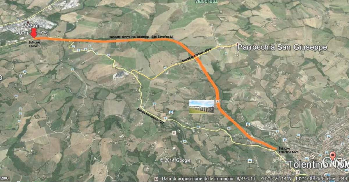 L’opera riguarda il collegamento intervallivo tra i comuni di Tolentino e San Severino Marche, con connessione alla strada statale 77 della Val di Chienti, e rientra tra gli interventi di completamento del sistema viario “Asse Viario Marche-Umbria e Quadrilatero di Penetrazione Interna”.