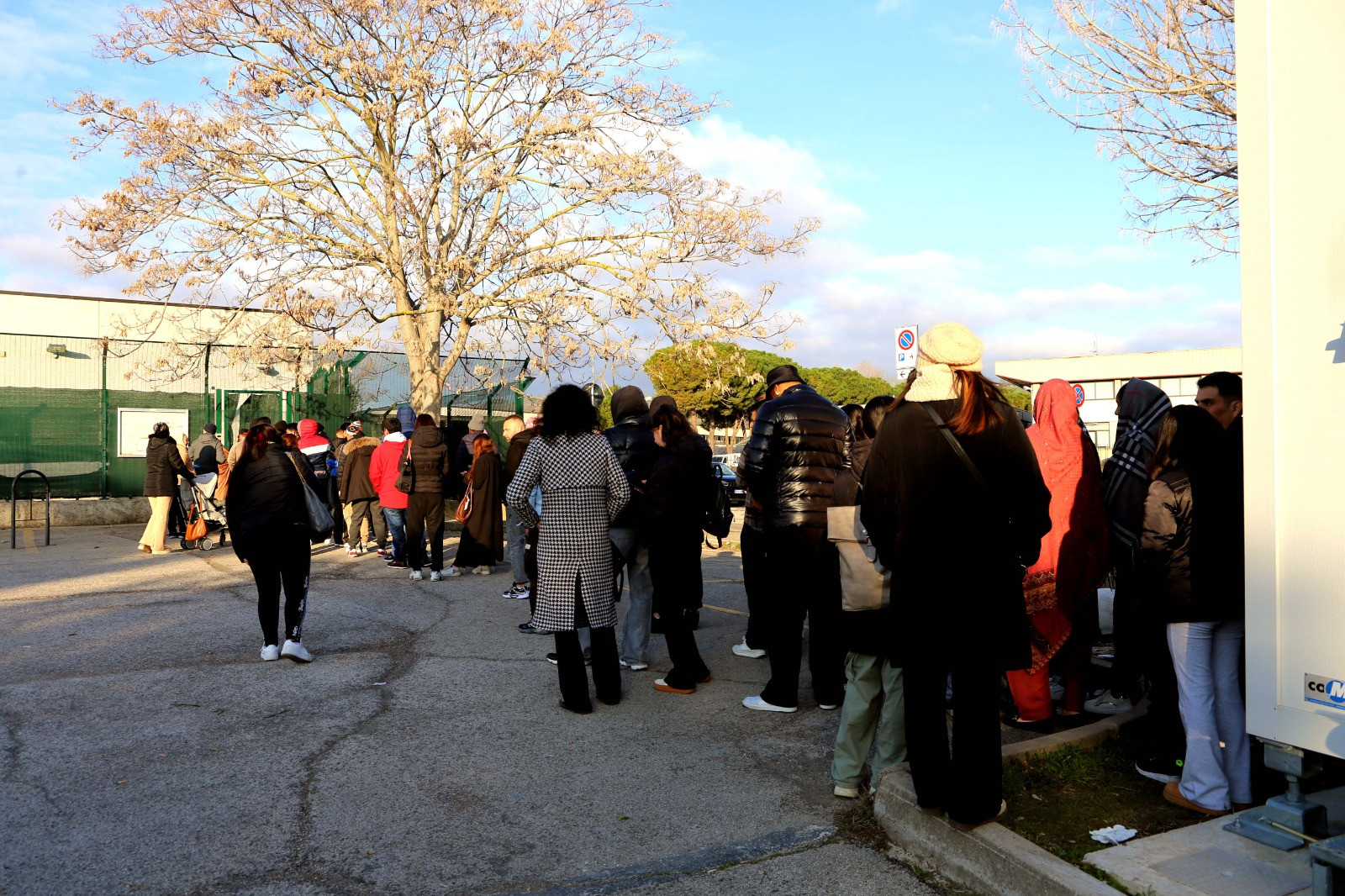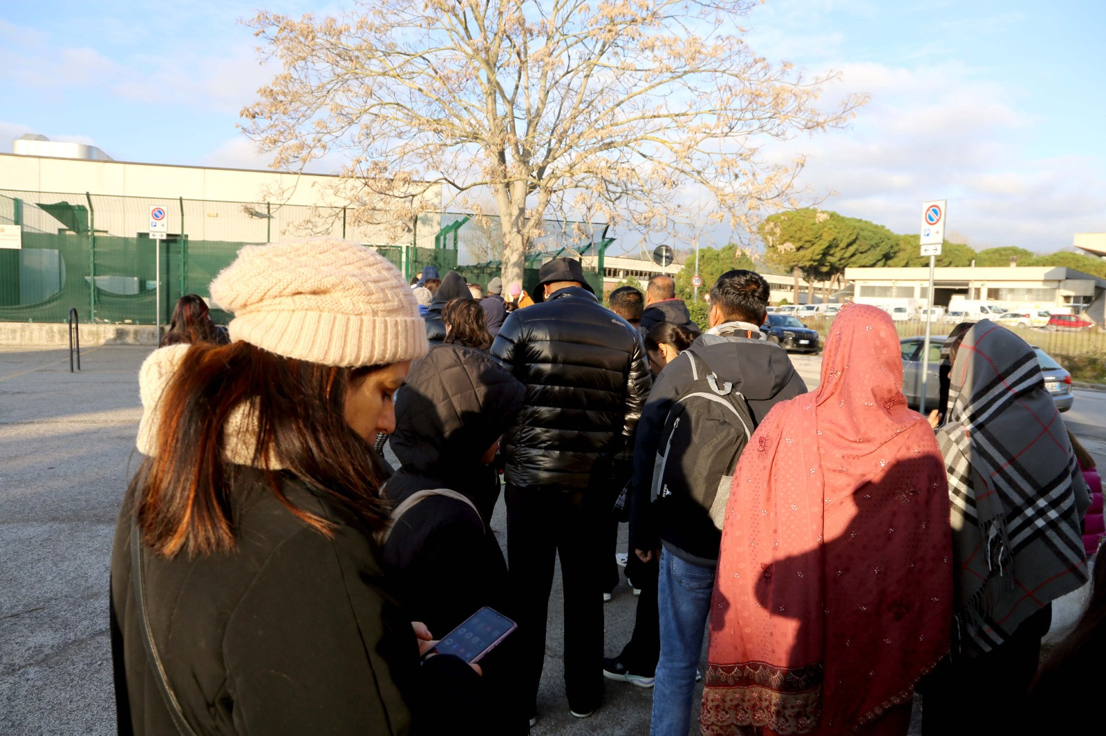 Lunghe code fin dalle prime ore del mattino davanti all’Ufficio Immigrazione di Macerata, sito a Piediripa vicino alla Motorizzazione Civile. Una scena che, secondo diverse segnalazioni, si ripete quotidianamente. Dopo varie segnalazioni, siamo andati a verificare la situazione sul posto. Già prima delle 8 del mattino, più di 50 persone erano in fila in attesa di entrare. Giovani, anziani, famiglie con bambini: tutti accomunati dalla necessità di rinnovare o richiedere documenti fondamentali per la propria permanenza in Italia. Molti raccontano di essere costretti ad arrivare con largo anticipo rispetto all’orario fissato sull’appuntamento, nel timore di non riuscire a essere ricevuti.