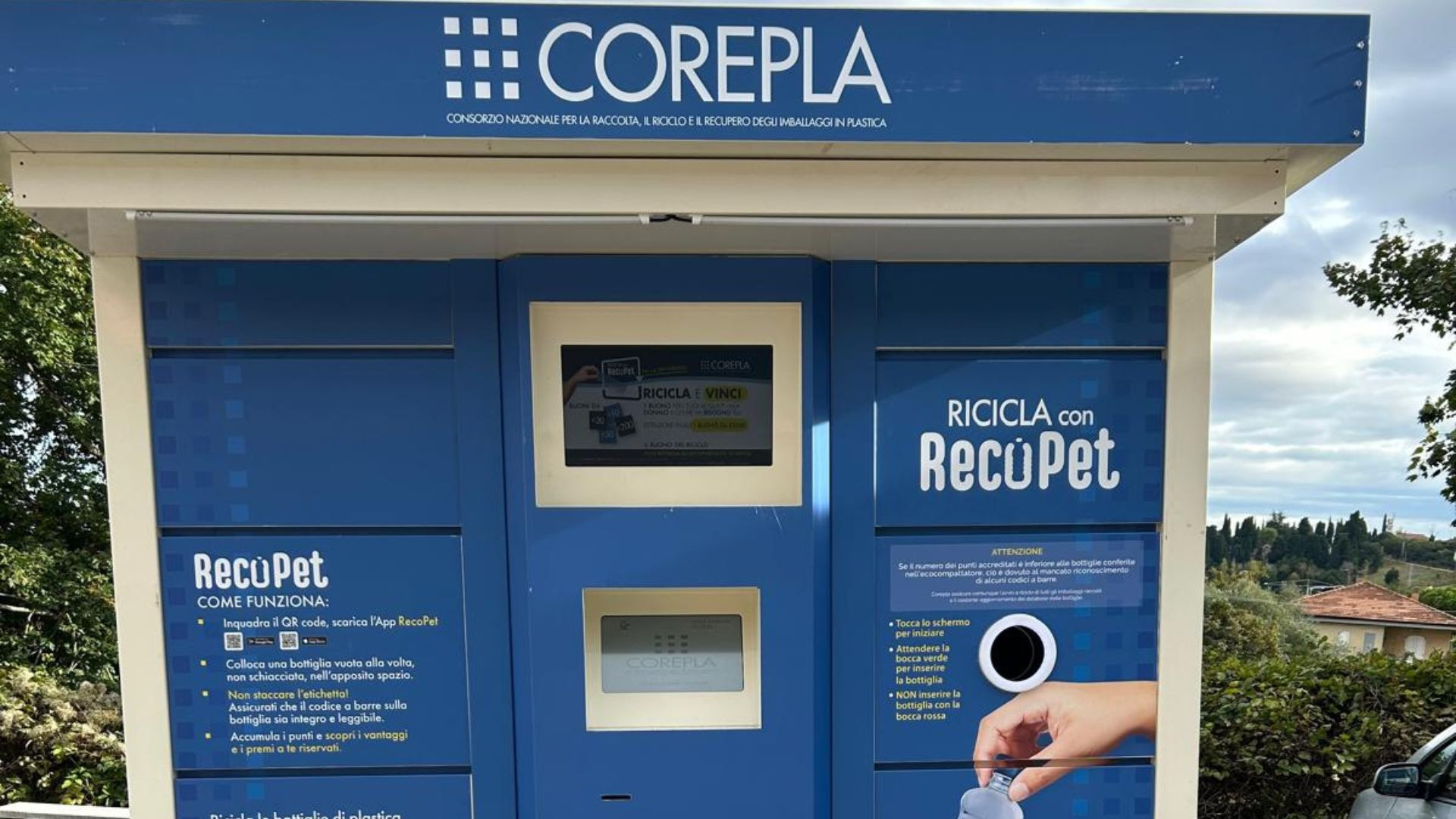 "Tanti i vantaggi per il Comune di Recanati e per i cittadini stessi: non solo l’Ente ha ricevuto i compattatori a titolo di comodato d’uso gratuito, ma saranno anche previste forme di premialità dedicate alla popolazione in base alla quantità di materiale conferito nei compattatori, per un concreto ritorno economico sul territorio in chiave di economia circolare. Ai cittadini basta scaricare l’app RecoPet sui principali app store, registrarsi e inserire le bottiglie all’interno del compattatore. Al termine dell’operazione, l’utente riceverà uno scontrino con un Qr code da scannerizzare, attraverso il quale è possibile caricare i punti accumulati sul proprio profilo nell’app. I premi previsti, cumulati nel saldo dell’applicazione, vanno da simpatici gadget fino a buoni sconto spendibili presso i supermercati del territorio, elencati nell’app".