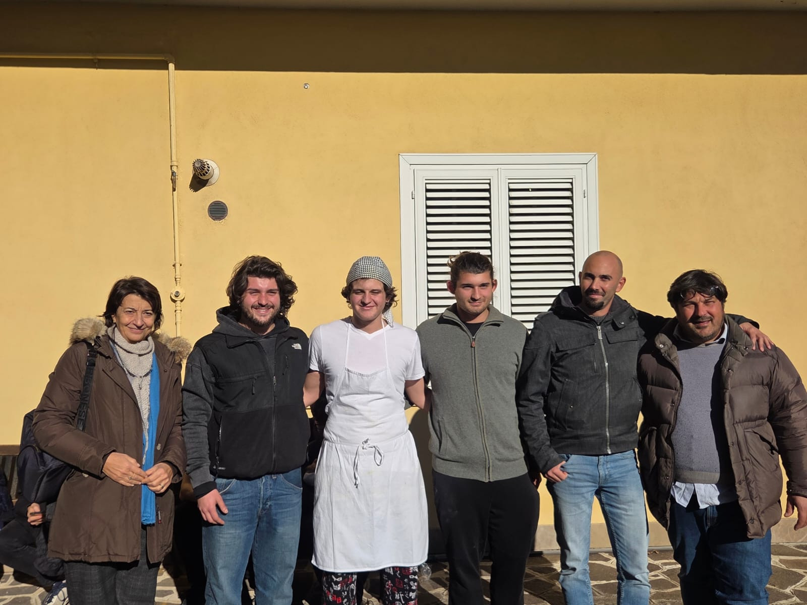 A fare da guide d’eccezione sono stati Lorenzo, Filippo e Andrea, figli di Mauro Quacquarini e rappresentanti della nuova generazione familiare. Con loro, gli studenti e le studentesse hanno attraversato due mondi solo in apparenza distanti: quello dei filari di Vernaccia Nera e dei locali di appassimento, e quello dei laboratori dove nascono panettoni, torroni, biscotti e cioccolate che animano le tavole delle feste e non solo.