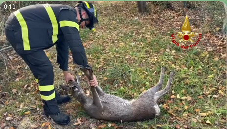 I Vigili del fuoco sono intervenuti prontamente per il soccorso. Con tecniche specifiche, sono riusciti a immobilizzare l'animale selvatico in difficoltà e, in totale sicurezza, lo hanno riportato sul piano strada.