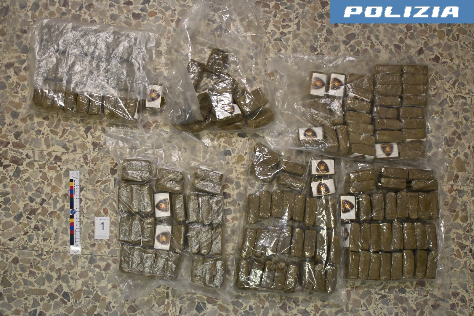 Ciò che si è palesato agli agenti è stato uno scenario da base logistica: un totale di circa 25 chilogrammi di sostanza stupefacente è stato rinvenuto e sequestrato. Nello specifico, la Polizia ha recuperato ben 23 kg di hashish già porzionati in 241 panetti, 1 chilo e mezzo di cocaina e un etto e mezzo di marijuana. Oltre al narcotico, gli agenti hanno sequestrato anche tutti gli strumenti del mestiere: bilancini di precisione, macchine per il sottovuoto e abbondante materiale per il confezionamento.