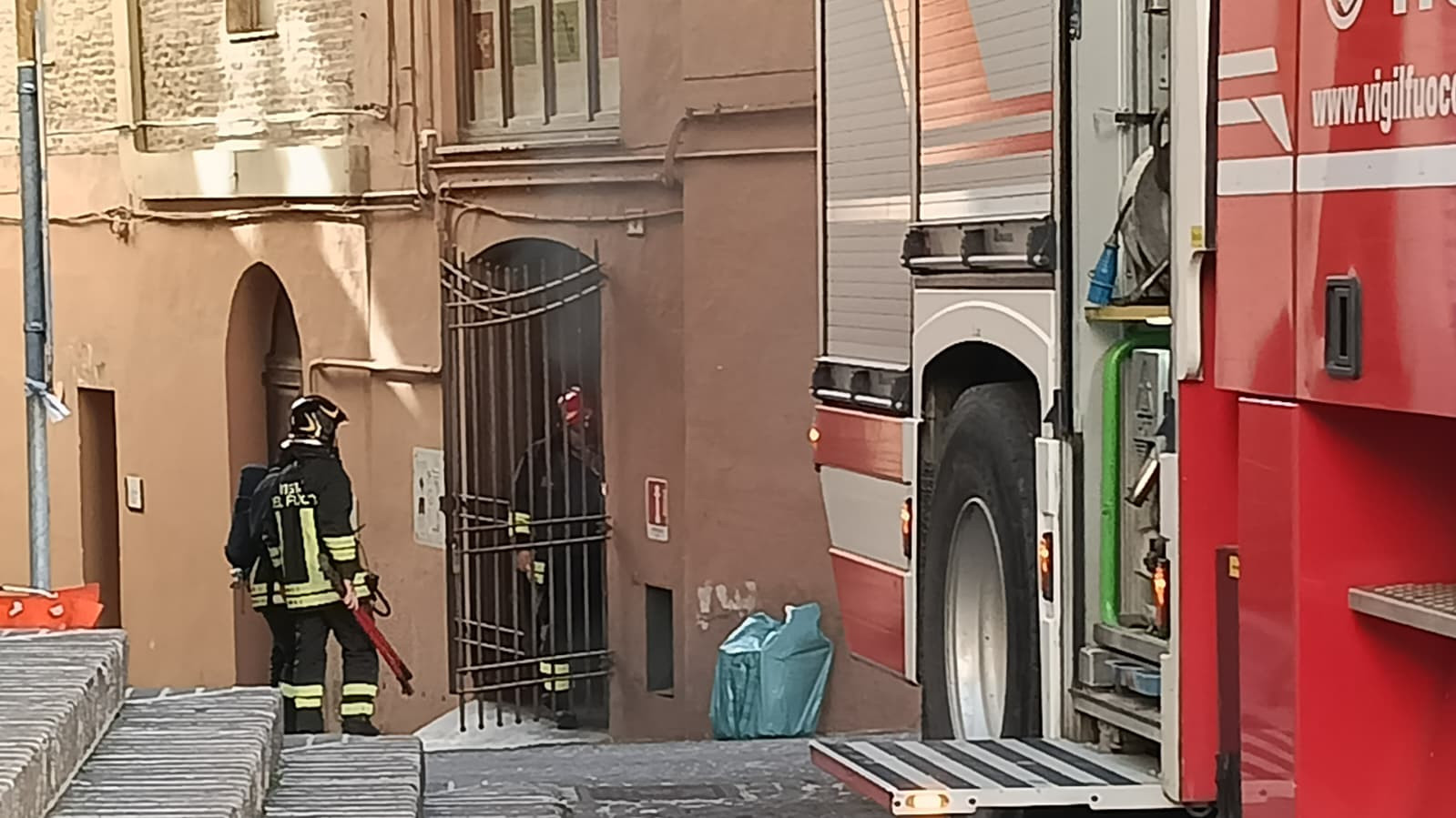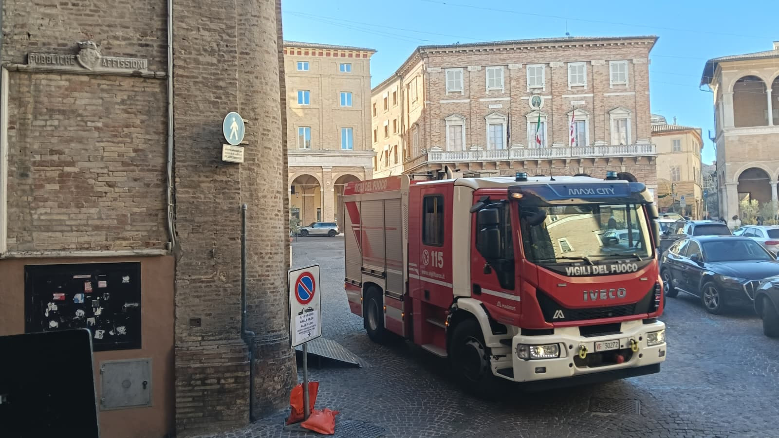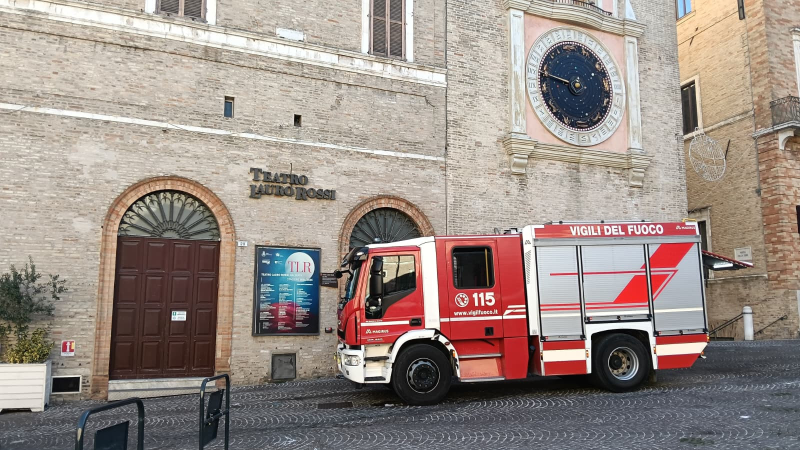 Macerata, incendio agli Antichi Forni: chiusi il Teatro Lauro Rossi e la Torre Civica (FOTO)