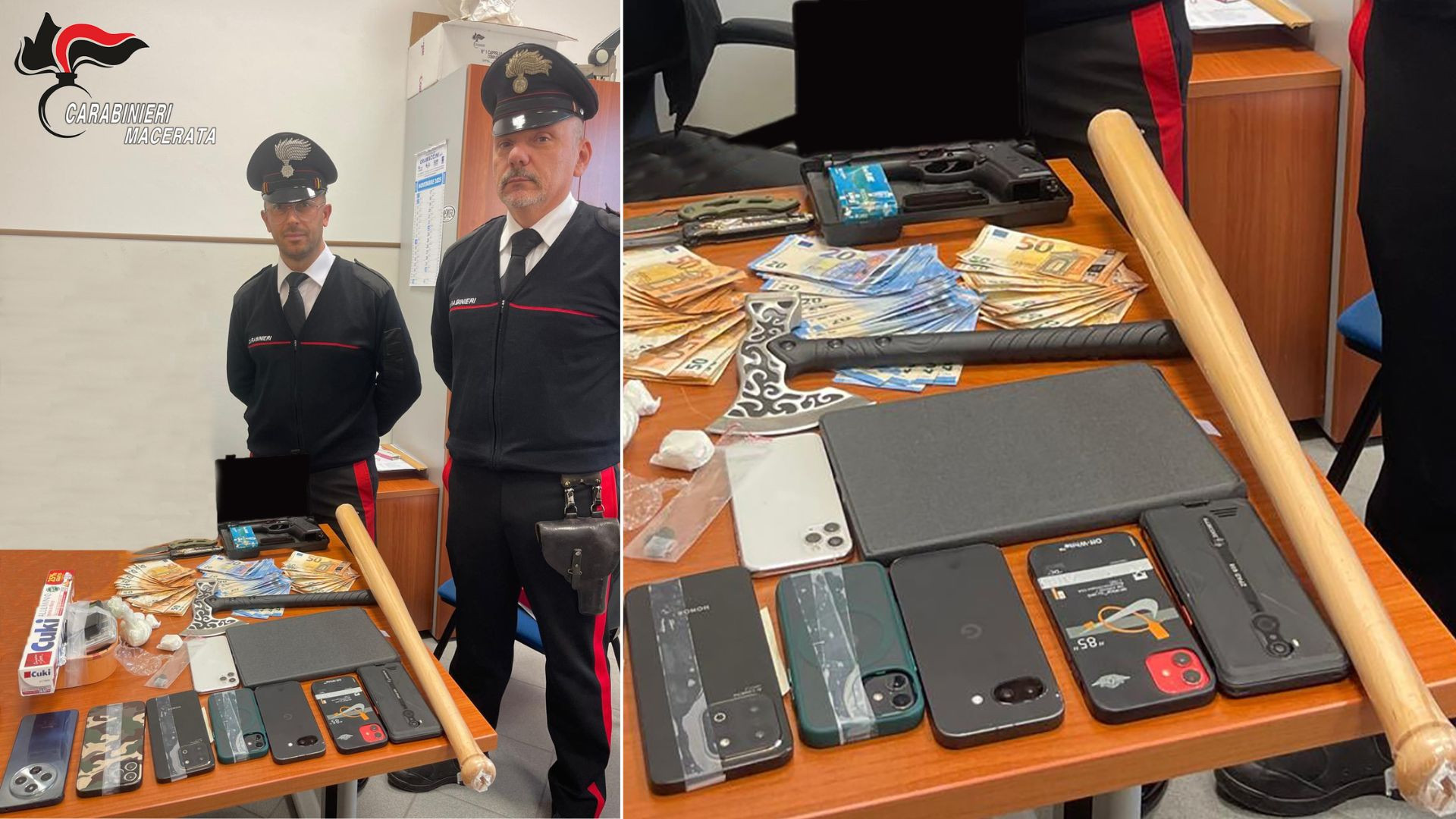 Un blitz dei carabinieri della stazione di Porto Recanati ha interrotto un’attività di spaccio nella cittadina rivierasca, portando all’arresto di un 31enne marocchino, già noto alle forze dell'ordine, trovato in possesso di cocaina, marijuana, hashish, eroina, denaro contante e materiale per il confezionamento, oltre a banconote false, otto telefoni, un tablet e un piccolo arsenale.