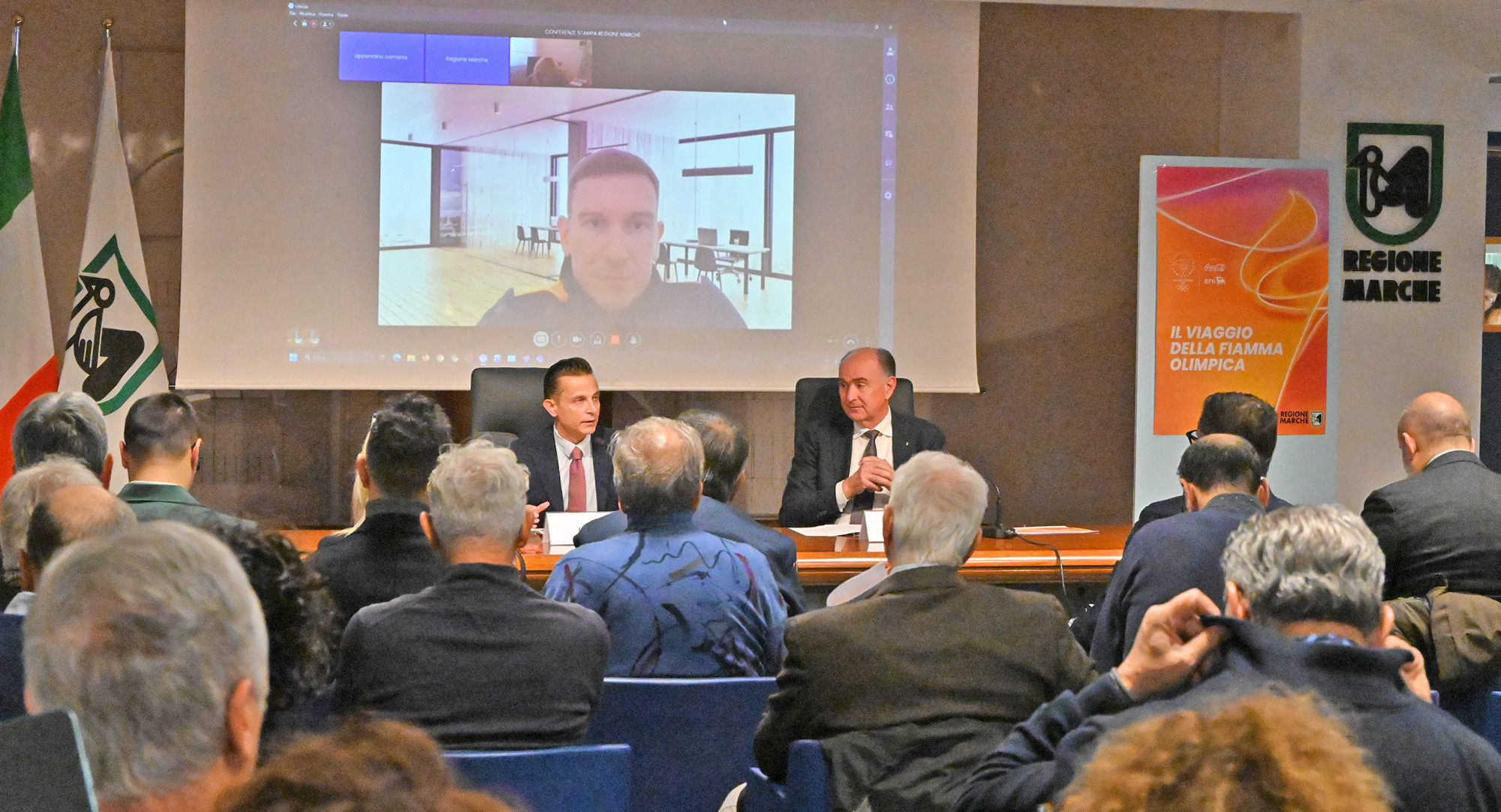 Un momento toccante ha aperto la conferenza, con un minuto di silenzio dedicato al grande tennista Nicola Pietrangeli, scomparso nella notte. Da lì è partito il racconto di un viaggio che, come sottolineato dal presidente del Coni Marche Fabio Luna, “sarà ricordato per sempre”, richiamando il passaggio della torcia di Torino 2006.