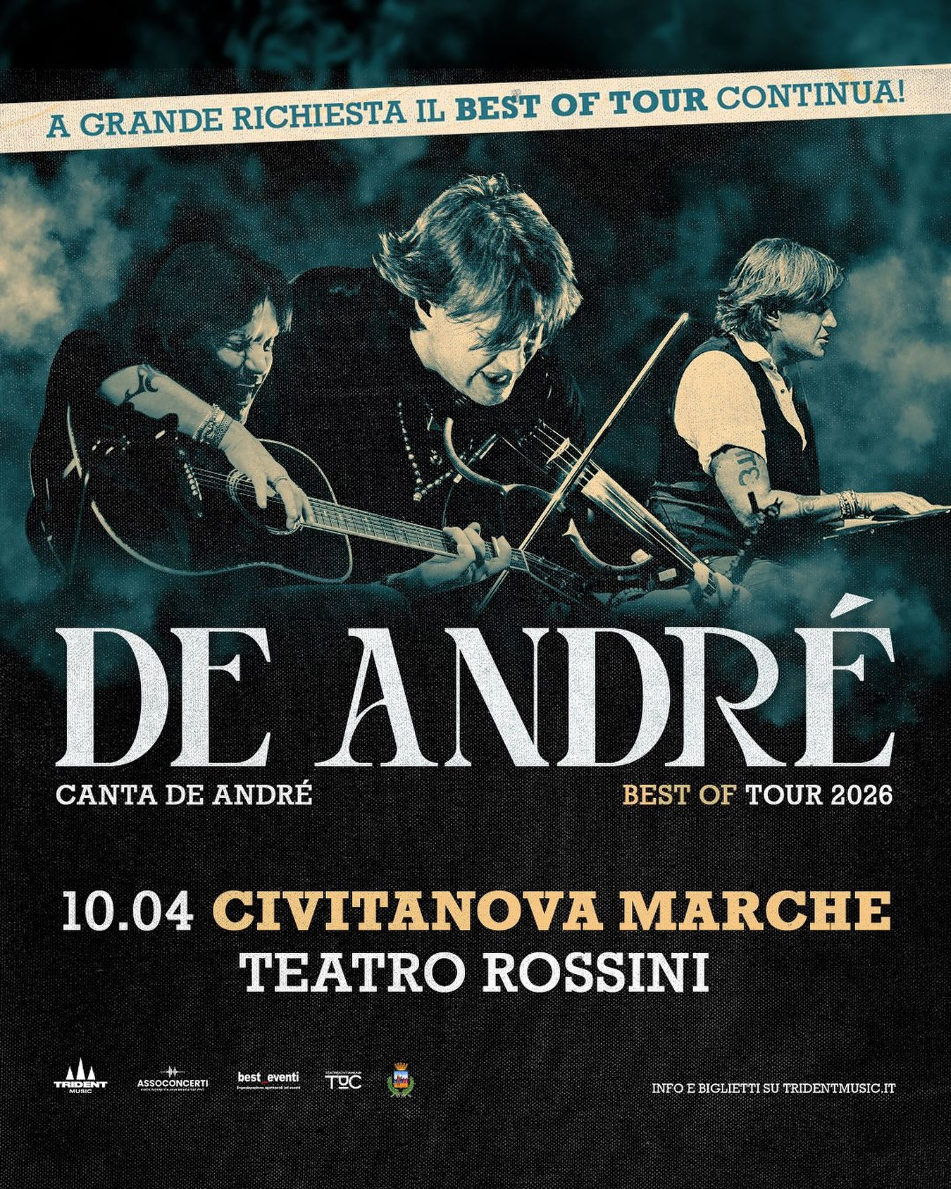 I biglietti per la data di Civitanova Marche, che inaugurerà ufficialmente il tour, sono disponibili su TicketOne e Ticketmaster, sia online che nei punti vendita autorizzati. Per il pubblico marchigiano sarà l’occasione unica di immergersi nel meglio del repertorio deandreiano attraverso la sensibilità, la voce e la storia di chi quella musica la custodisce per tradizione e vocazione. Un debutto che si annuncia già memorabile.