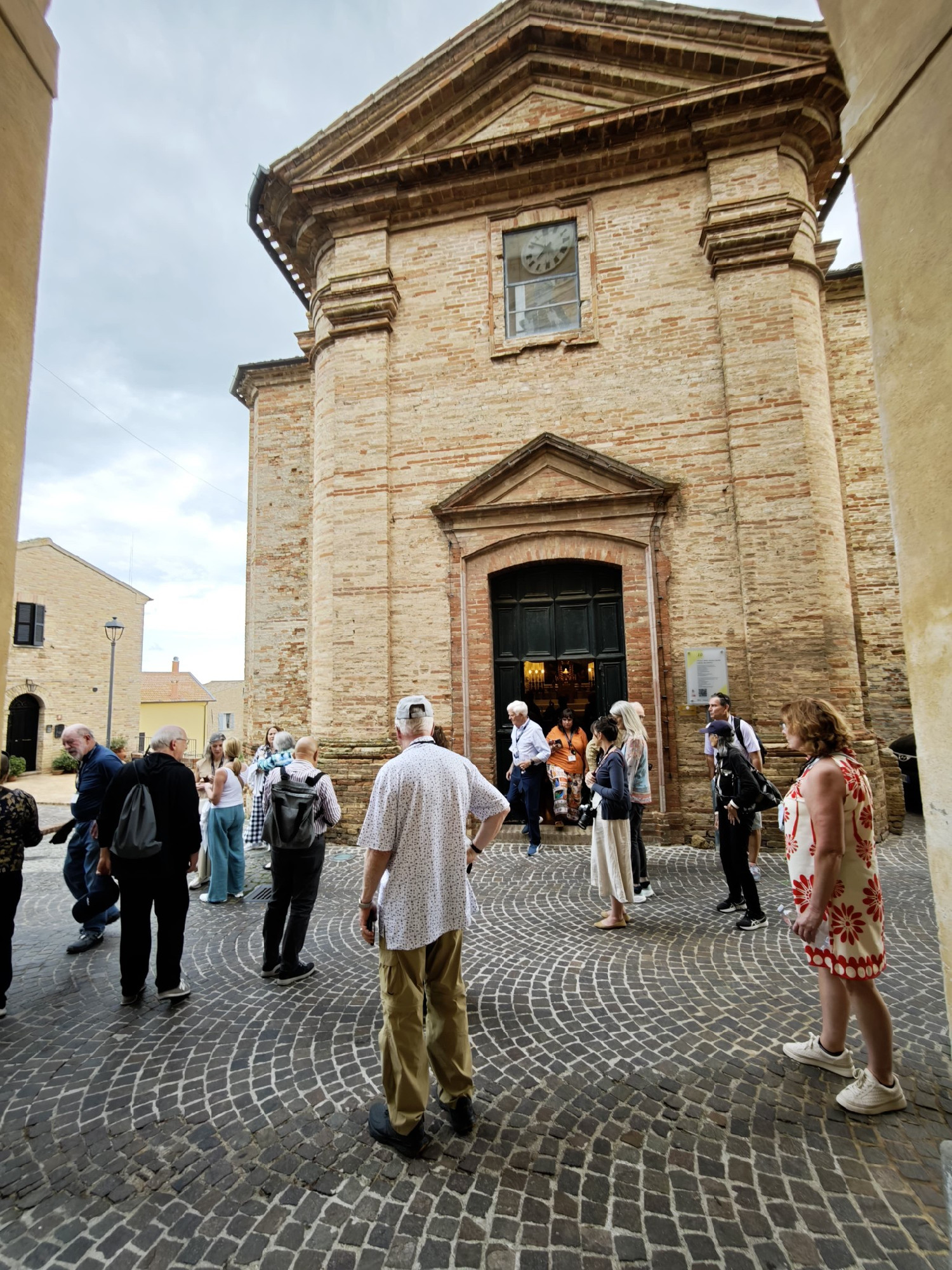 Il tour ha previsto una tappa al Museo Cinema a Pennello di Paolo Marinozzi, unico nel suo genere, seguito da una passeggiata guidata nel borgo insieme agli esperti del Centro Studi Montecosaresi. I partecipanti hanno potuto ammirare luoghi simbolo come la Chiesa delle Anime, il Complesso Agostiniano e la Chiesa di Sant’Agostino, scoprendo curiosità e storie locali.