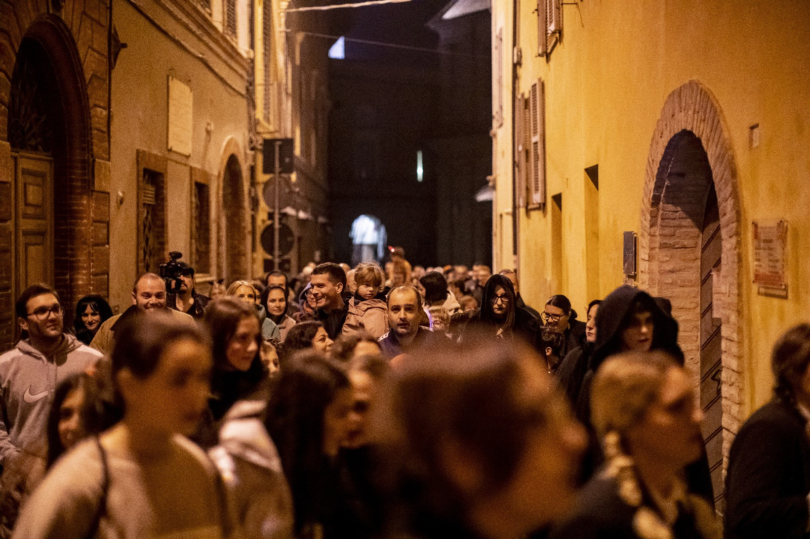 Fondamentale anche il grande lavoro di allestimento del paese, con scenografie ed effetti luce curati dai volontari de La Rondinella, coordinati dalla direzione artistica di Valentina Pigliapoco.