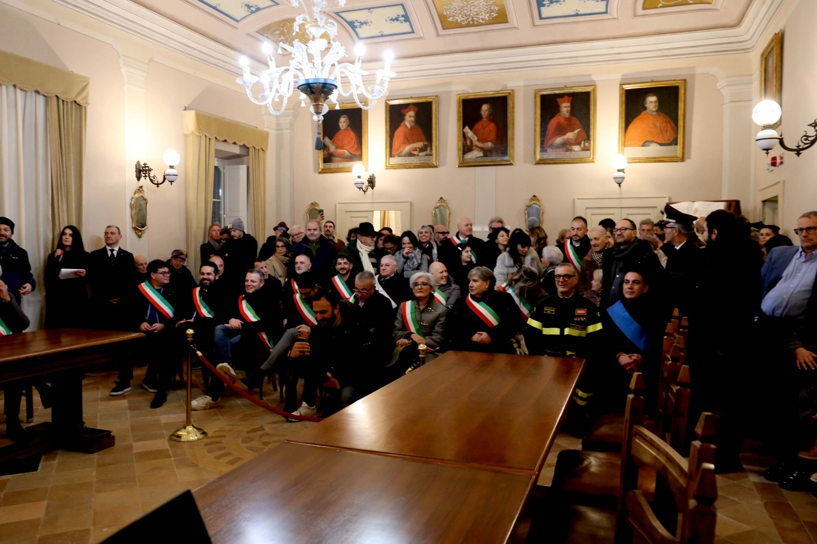 Oggi, sabato 6 dicembre, Loro Piceno ha vissuto una giornata di forte valore simbolico e istituzionale con l’inaugurazione del palazzo comunale dopo il lungo e complesso intervento di ristrutturazione post sisma. Alla cerimonia, molto partecipata, erano presenti numerosi sindaci del territorio, il commissario straordinario alla ricostruzione Guido Castelli e il presidente dell’Unione Montana Monti Azzurri Gianpiero Feliciotti. Ad accogliere le autorità e i cittadini è stato il sindaco Robertino Paoloni che, con visibile commozione, ha restituito alla comunità la casa comunale completamente rinnovata, nel cuore del centro storico.