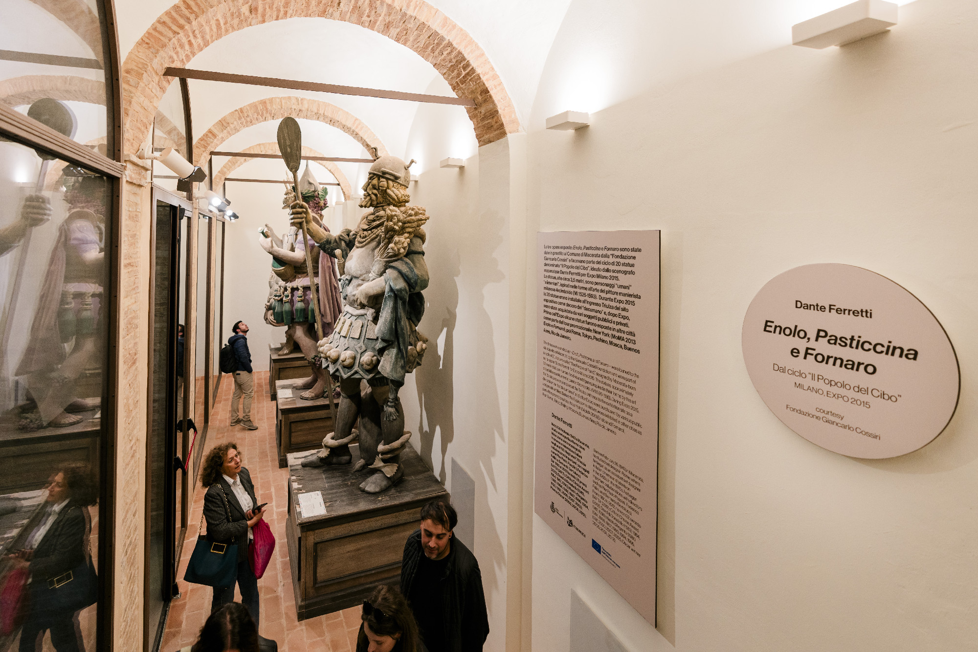 Come ulteriore valorizzazione e attrattività del luogo, all’interno della “vetrina porticata” sono state collocate le tre statue - Enolo, Fornaro e Pasticcina - facenti parte del ciclo “Il popolo del cibo” ideato dallo scenografo Dante Ferretti per Expo Milano 2015 e concesse dalla Fondazione Giancarlo Cossiri.
