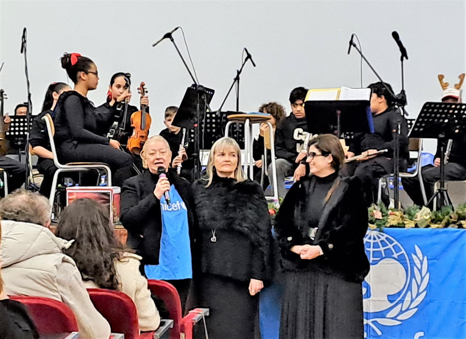 Ad aprire ufficialmente il concerto è stato l’intervento di Patrizia Scaramazza, presidente di UNICEF Macerata, che ha richiamato il forte legame tra questa scuola e i valori della tutela dei diritti dell’infanzia, ricordando come il Convitto Leopardi, da anni Scuola Amica delle Bambine e dei Bambini, trasmetta valori di cura, attenzione e solidarietà, un messaggio perfettamente in sintonia con lo spirito del Natale.