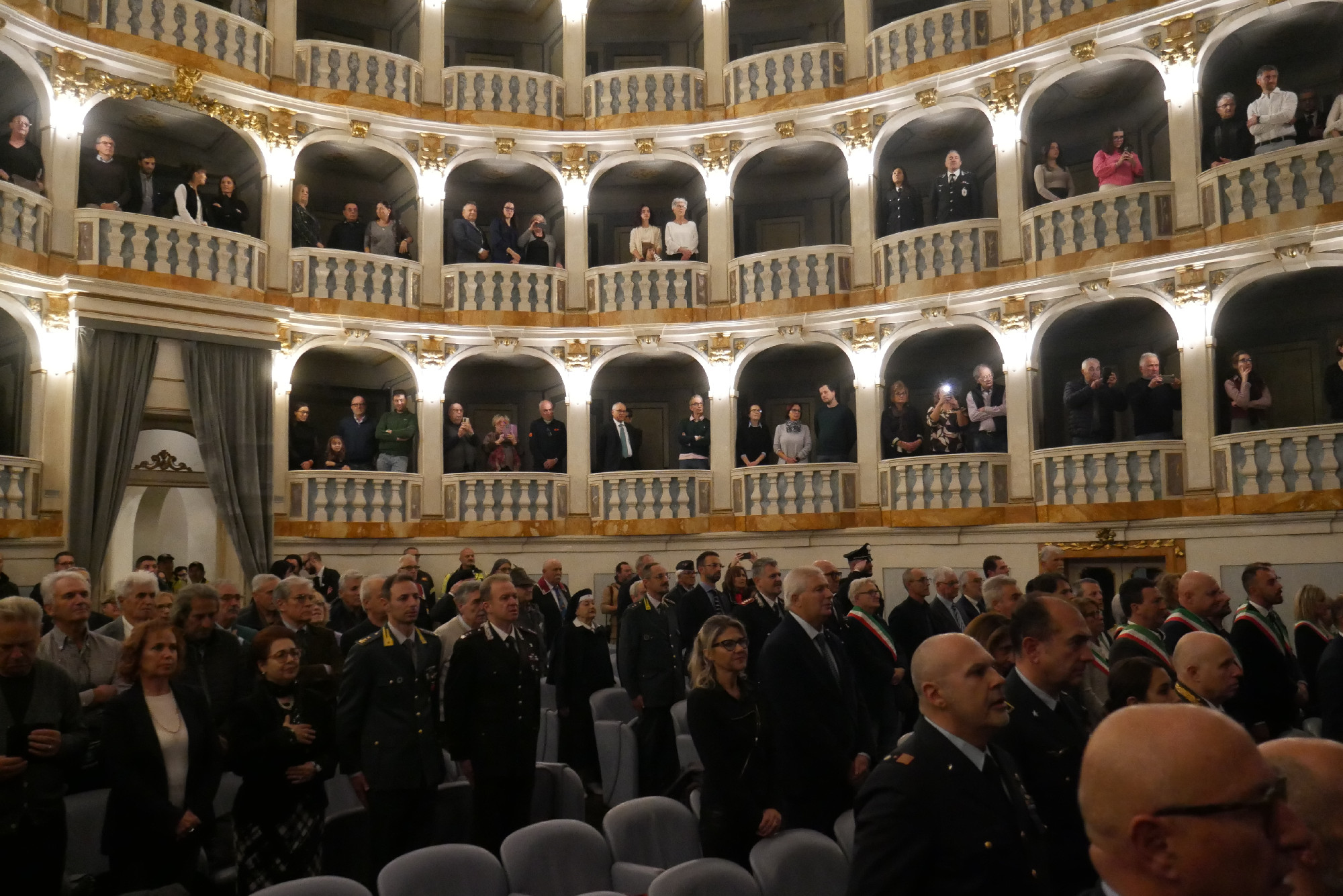 Nel pomeriggio di lunedì 3 novembre, alle 16:30, il Teatro Lauro Rossi di Macerata ha ospitato la cerimonia di consegna dei diplomi dell’Ordine "Al Merito della Repubblica Italiana" e delle medaglie d’onore conferite dal Presidente della Repubblica ai cittadini italiani, militari e civili, deportati e internati nei lager nazisti e destinati al lavoro coatto per l’economia di guerra, nonché ai familiari dei deceduti.