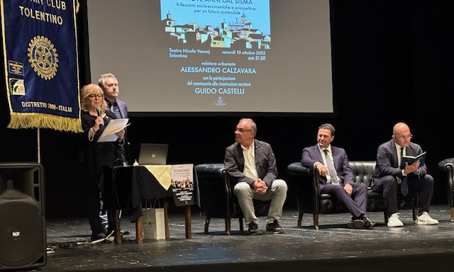 A nove anni dal devastante sisma del 2016, Tolentino ha ospitato un importante momento di riflessione sul futuro della città. Venerdì sera, il teatro Nicola Vaccaj ha fatto da cornice al convegno organizzato dal Rotary Club Tolentino, dal titolo “Tolentino a nove anni dal sisma. Riflessioni socio-economiche e prospettive per un futuro sostenibile”, evento patrocinato dal Comune di Tolentino.