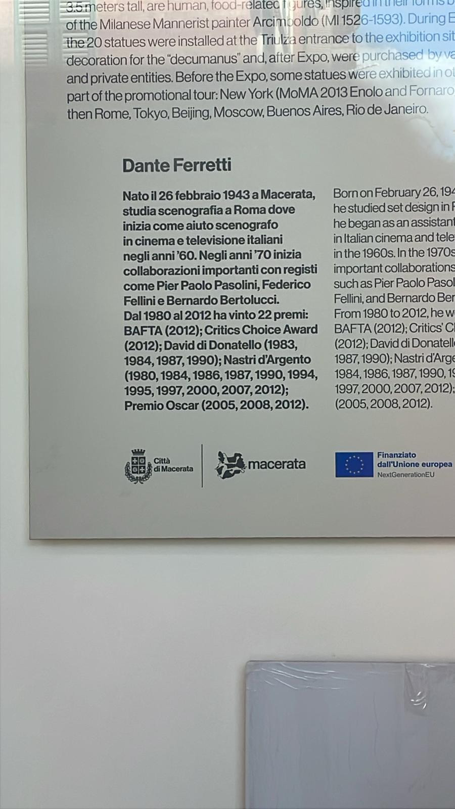Miliozzi segnala inoltre errori nell’allestimento: «I pannelli informativi sono scadenti e poco leggibili. Hanno scritto che Dante Ferretti ha lavorato con Bernardo Bertolucci, uno dei pochi registi con cui non ha mai collaborato. Invece, Ferretti ha lavorato con Pasolini, Fellini, Cavani, Comencini, Ferreri, Petri, Scorsese, Burton, De Palma, Minghella, Branagh e tanti altri».