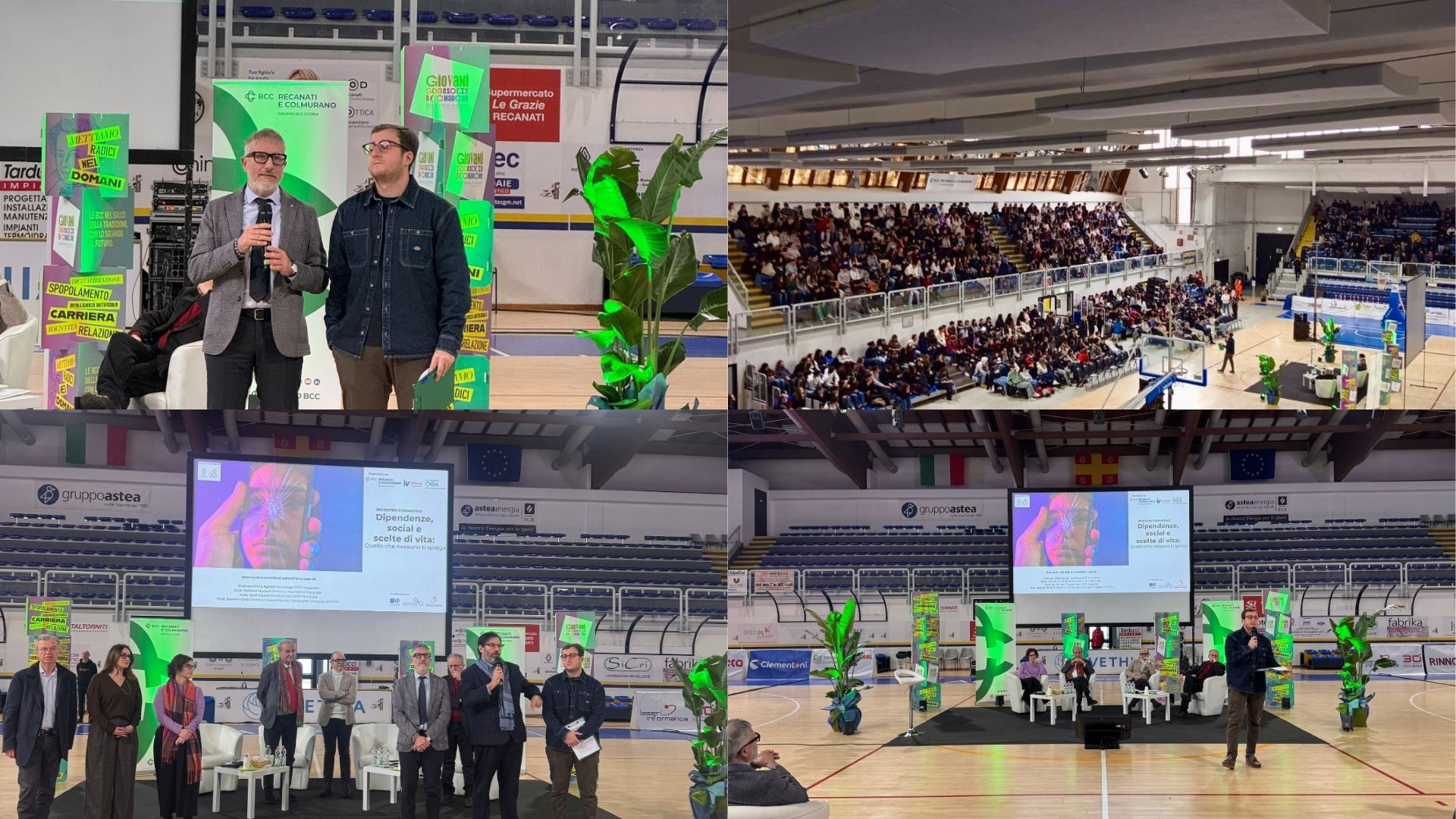 Si è svolto ieri mattina, presso il Palasport Cingolani – Arena BCC di Recanati, l’incontro formativo sul tema "Dipendenze, social e scelte di vita: quello che nessuno ti spiega". L’iniziativa, promossa dalla BCC di Recanati e Colmurano insieme a Infinito Vita e al gruppo Giovani Soci Infinito Lab della Banca, con il patrocinio del Comune di Recanati, ha registrato una partecipazione straordinaria di oltre 700 studenti. Le classi quarte e quinte degli istituti superiori del territorio – IIS Enrico Mattei, Liceo Giacomo Leopardi e IIS Bonifazi-Corridoni – hanno animato l’incontro, trasformandolo in un’occasione di ascolto e riflessione rivolta alle nuove generazioni.