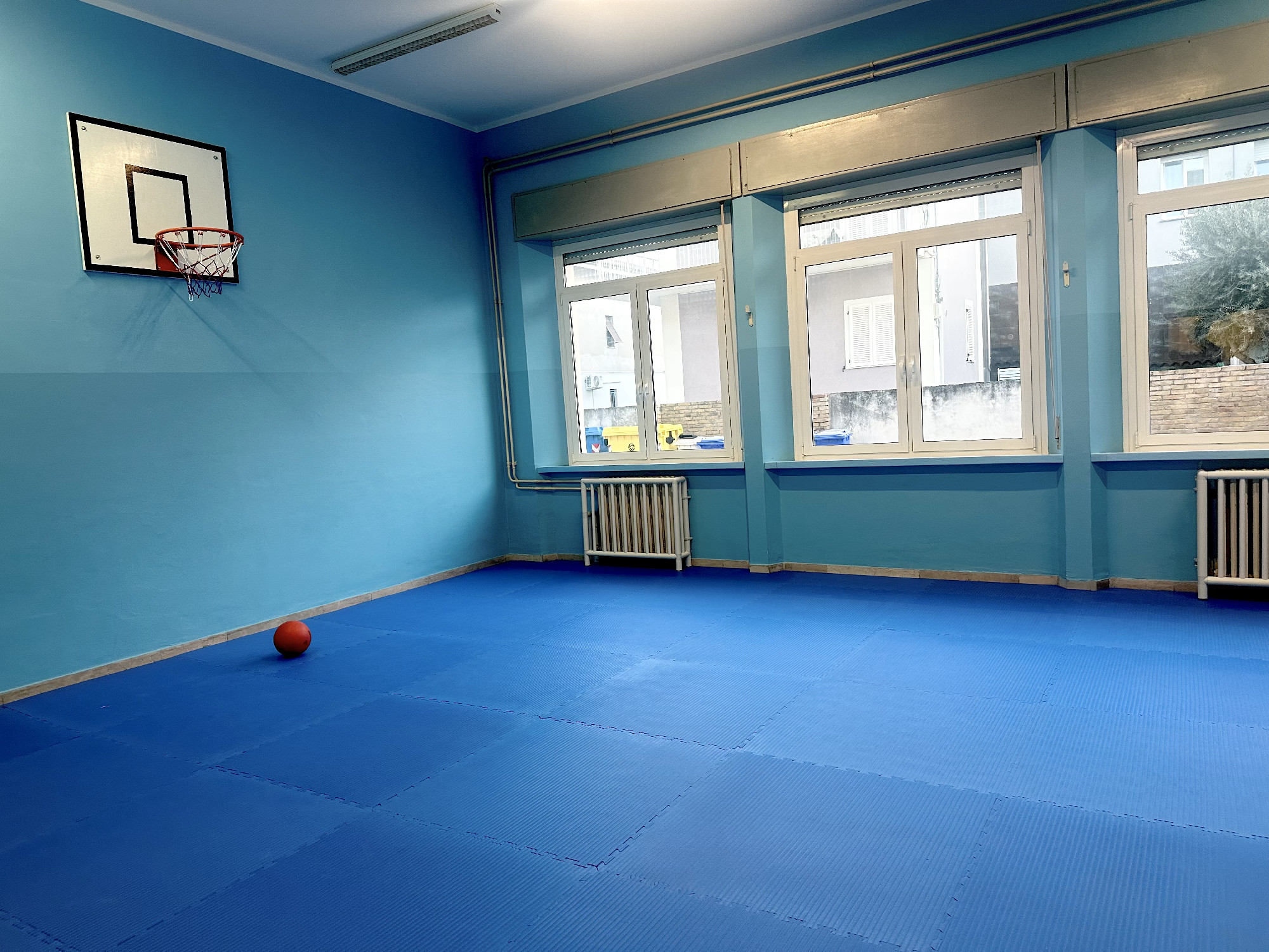 La nuova palestra è dotata di pavimentazione antinfortunistica, materiali fonoassorbenti,arredi colorati e attrezzature per la motricità infantile, garantendo così un ambiente accogliente, sicuro e stimolante per lo svolgimento delle attività scolastiche e dei laboratori motori.