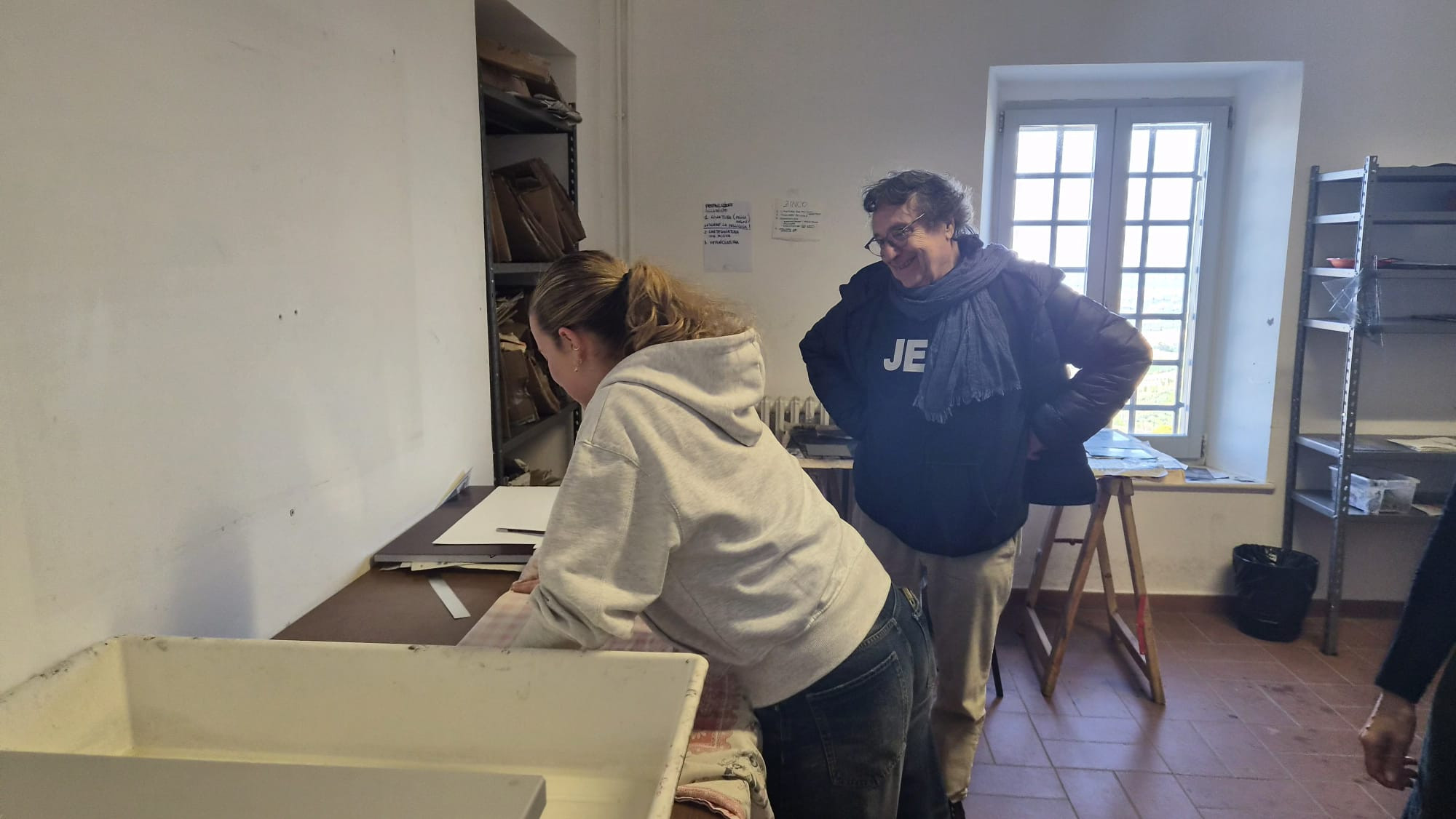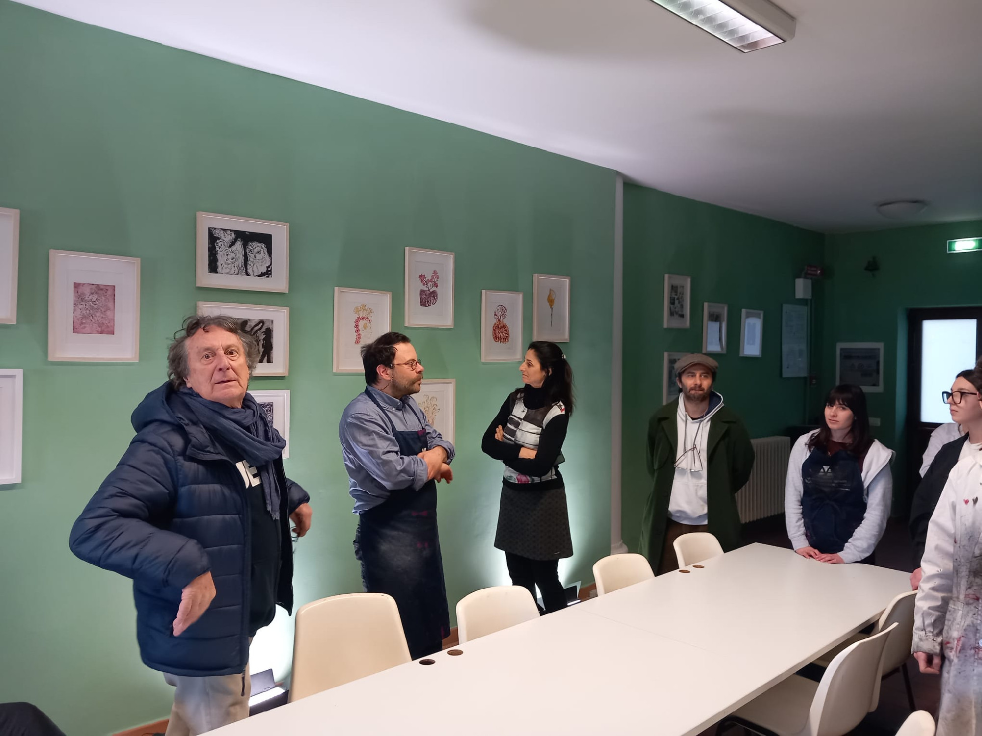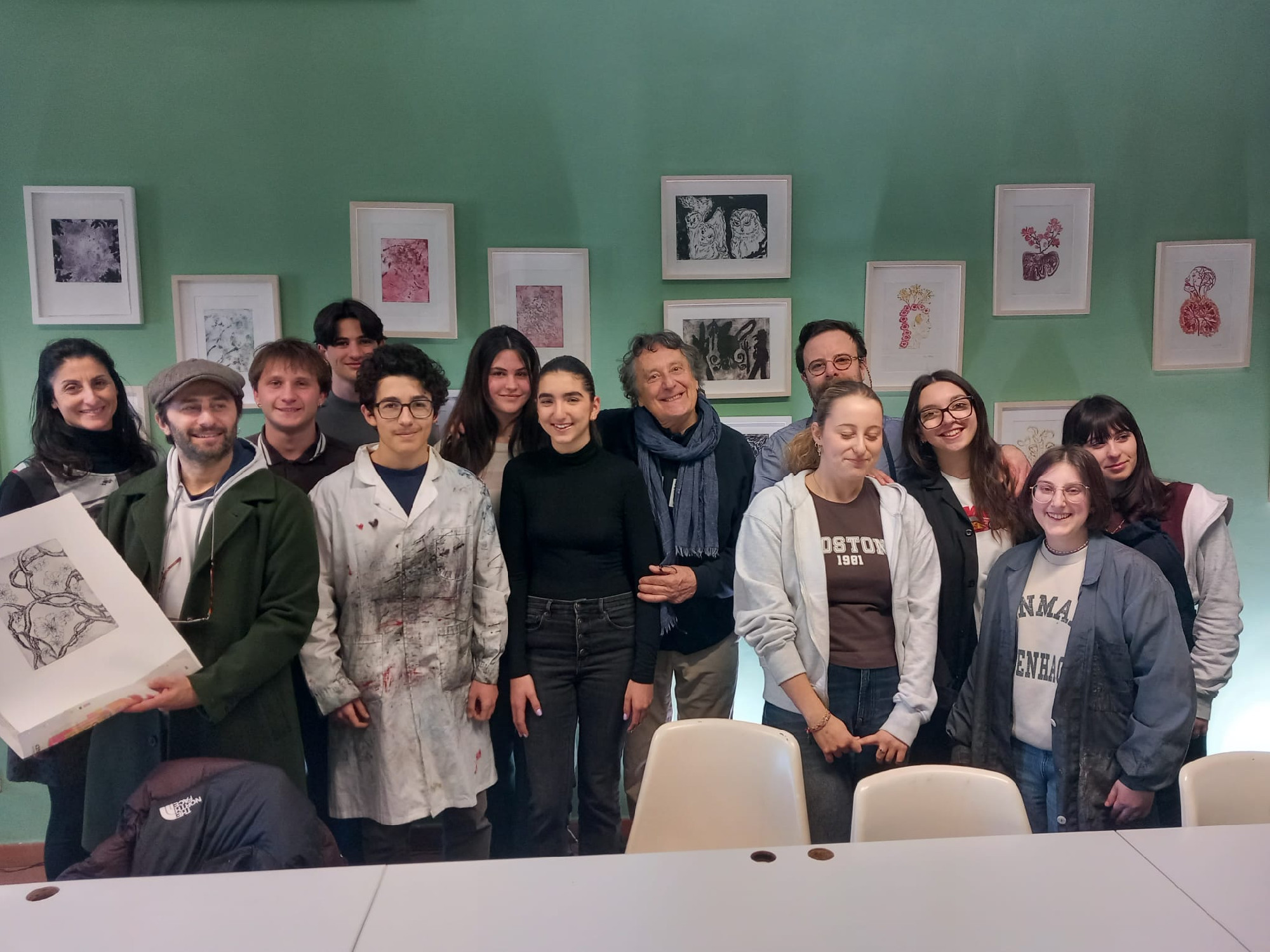 Durante l'attenta visita, gli ospiti hanno potuto approfondire le tecniche dell’acquaforte, ammirando la maturità stilistica e la profondità concettuale delle opere grafiche realizzate dagli studenti. Un apprezzamento, quello degli artisti, che è andato oltre la semplice cortesia: affascinati dalla qualità dei manufatti, gli ospiti hanno infatti scelto di acquistare alcune opere, suggellando così un legame autentico tra il mondo del teatro e la creatività giovanile recanatese.