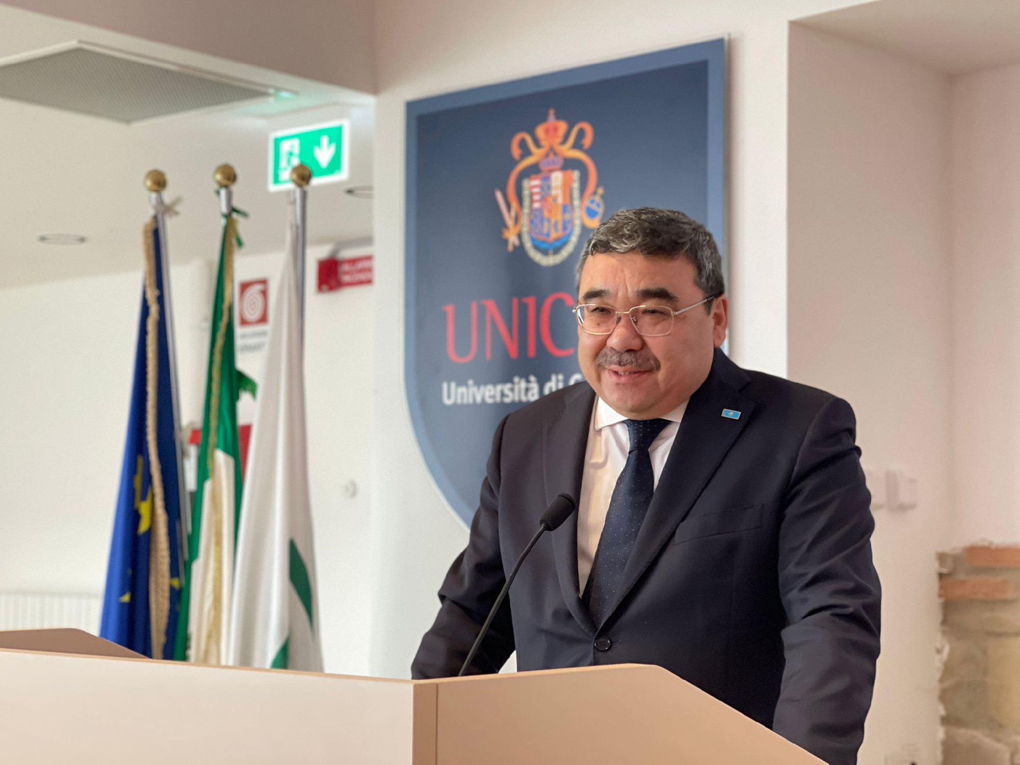 Si è svolta questa mattina, presso la Sala delle Mura del rettorato dell’Università di Camerino, la cerimonia di conferimento del Diploma di Benemerenza a Sua Eccellenza Yerbolat Sembayev, ambasciatore della Repubblica del Kazakistan presso la Repubblica Italiana.