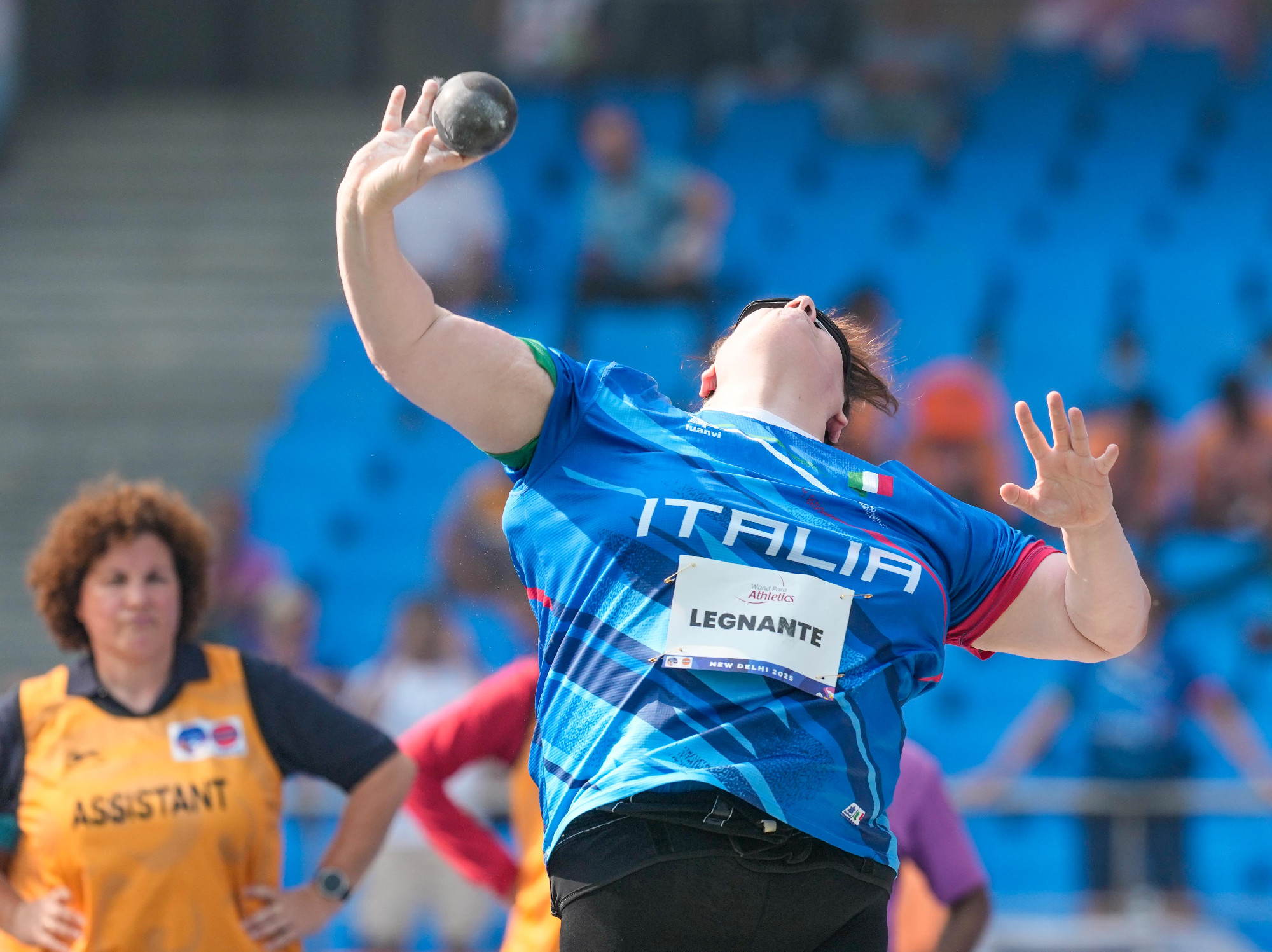 Alle ore 5:30 Italiane è scesa in pedana per il Peso categoria F11 la nostra Assunta Legnante. La capitana azzurra, allenata dal tecnico Roberto Minnetti, è sempre più nella leggenda. L’indomabile atleta oggi è salita sul tetto del mondo per la sesta volta nel getto del peso. Senza rivali la nostra campionessa che con un miglior lancio da 14,44 mette quasi due metri tra sé e la cinese Zhao Yuping, argento con 12,67. L'atleta asiatica beffa all'ultimo tentativo Lydia Church, che con 12,60 conquista il bronzo per la Gran Bretagna.