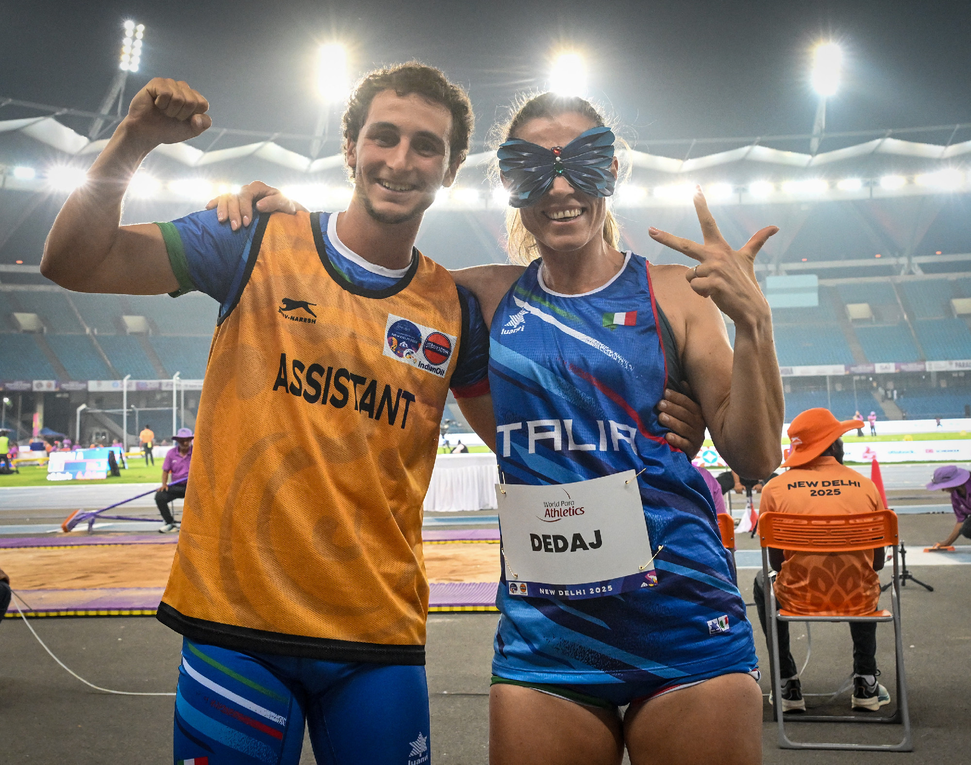 Alle ore 13:30 Italiane è giunto il momento di scendere in pedana per Arjola Dedaj nella finale del Salto in Lungo categoria T11. Arjola, in pedana con la guida Stefano Storti, allenata dal marito e atleta nazionale Emanuele Di Marino, otto anni dopo la vittoria di Londra 2017, torna sul podio iridato nel salto in lungo con un bronzo di grande spessore. Non una gara semplice per l'azzurra, che si trova fin da subito a lottare contro problemi fisici che ne influenzano la prestazione e la obbligano a richiedere l'assistenza del medico. La lunghista azzurra però non cede al dolore e con un salto da 4,41 conquista il terzo gradino del podio alle spalle della spagnola Alba Garcia Falagan, oro in 4,80, e della francese Tiffany Logette-Lods, seconda con 4,56.