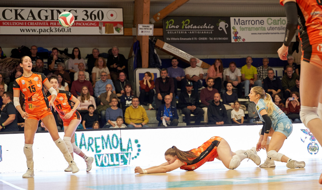 Non sono sufficienti i 17 punti di Decortes, top scorer del match, contro il 52% in attacco delle piemontesi, guidate dalla MVP Nemeth (15 punti con il 70%). Importante anche il servizio della Fenera (4 ace) e i 4 muri di Gray. Per Kokkonen, tra le arancionere, 11 punti con oltre il 50% in attacco.