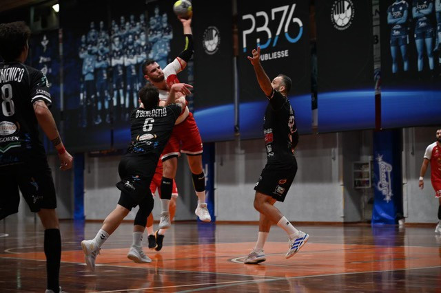 Chiaravalle riordina le idee e torna a +4 con Hammouda e Altomonte (26-22), con in mezzo il palo di Naghavialhosseini (rivisto al VR per un possibile gol fantasma inesistente) e la parata di Albanesi su Francisco Cuello con l’ausilio della traversa. Si prosegue sul punto-punto fino al 29-25: dopo il gol di Altomonte, infatti Francisco Cuello dà una manata (probabilmente involontaria) ad Abdurahamanovic. Gli arbitri riguardano l’azione al VR e decidono di espellere il giocatore chiaravallese.