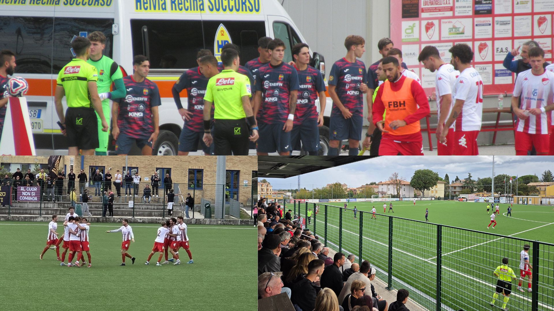 Nella ripresa, dopo un bel primo tempo, nient’affatto bloccato, il duello riprende con Pitronaci che al 7’ impegna Fatone in angolo. Mariotti arretra Sopranzetti spostando Hernandez terzino e il suo Chiesanuova inizia a prendere le misure ai rivali. Non accade molto, ma giocando sul lato di Mongiello -deliziosi alcuni stop-, i biancorossi ora sono più continui e propositivi. Al 32’ chance di testa per Sopranzetti, alto. Cala l’intensità ma non il desiderio di spuntarla. Il Chiesanuova (che perde Persiani) ci riesce meglio e al 47’ ancora Sopranzetti, su angolo, può calciare dal dischetto, la respinta di un giocatore salva la Civitanovese.