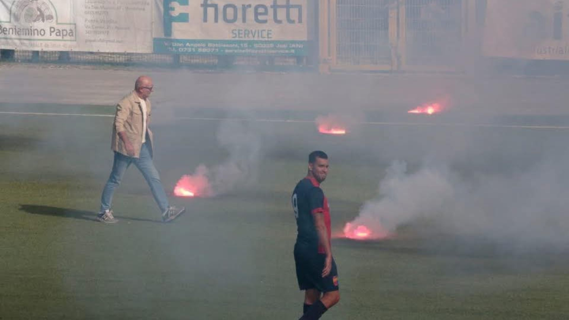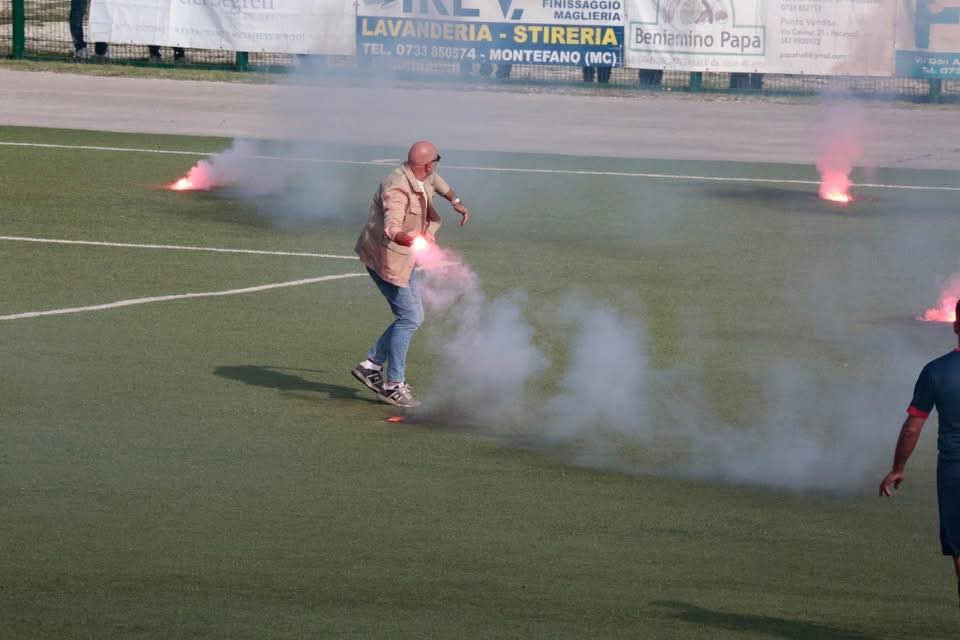 A intervenire prontamente per rimuovere i fumogeni è stato il presidente del Montefano, Stefano Bonacci, che ha contribuito a riportare la situazione sotto controllo.