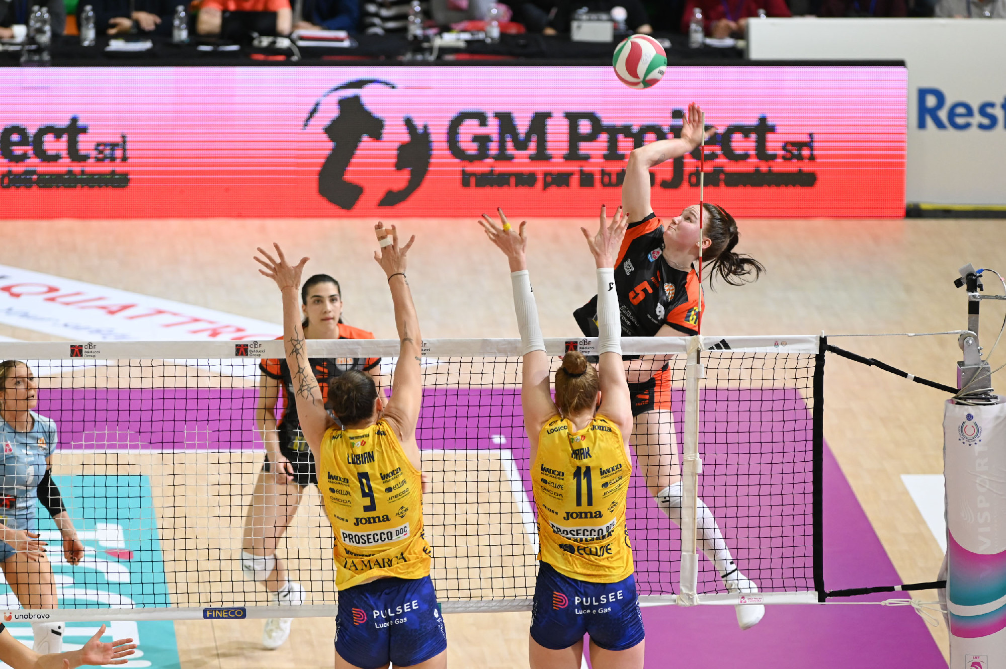 PROSECCO DOC A.CARRARO IMOCO CONEGLIANO: Ewert 5, Braga Guimaraes 16, Lubian 11, Haak 11, Daalderop 8, Chirichella 11, Scognamillo (L), Adigwe 1, Wolosz, Munarini, Sillah, De Gennaro. Allenatore Santarelli.
