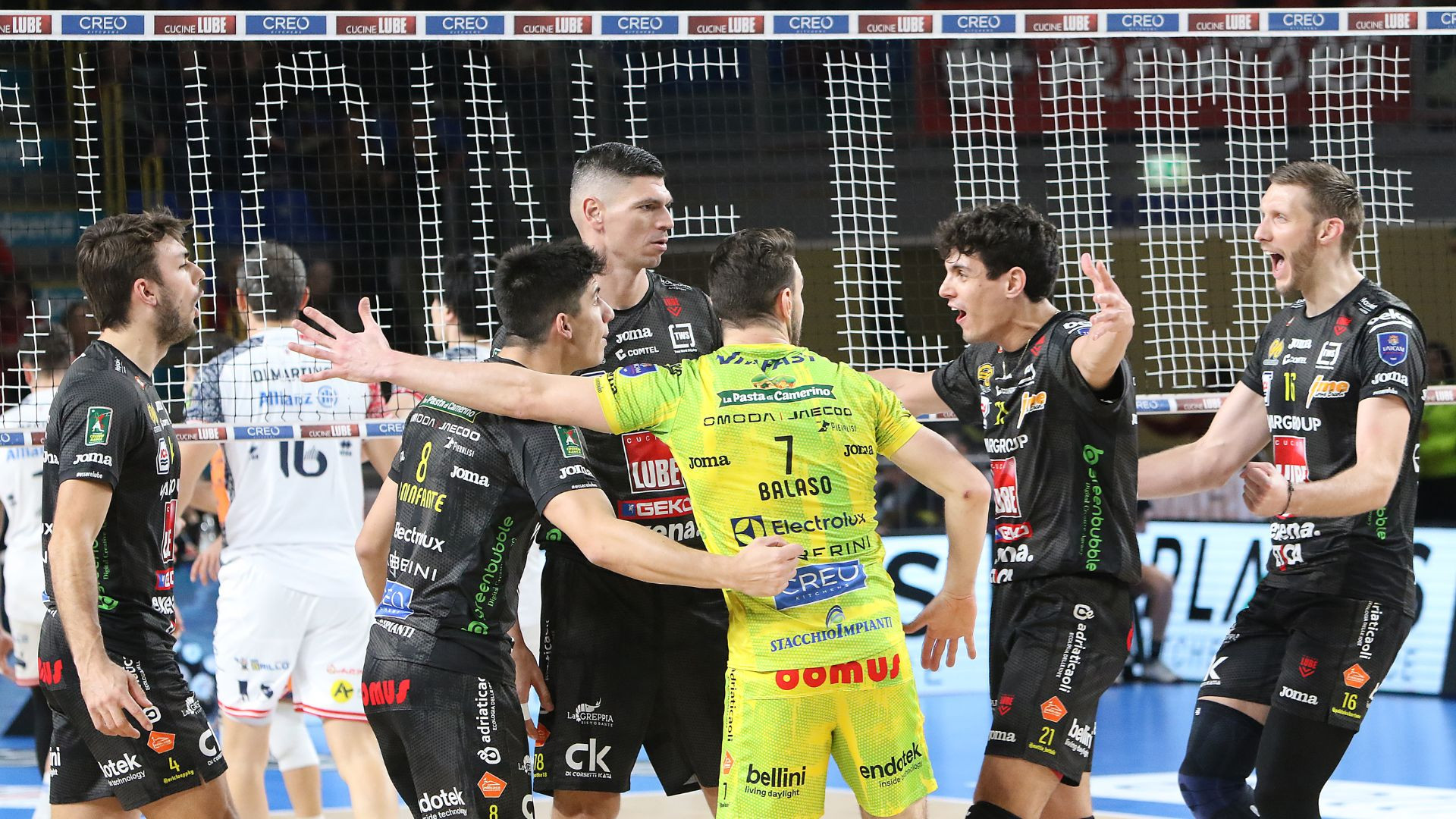 La formazione di casa inizia con l’opposto di ruolo, ma appare un po’ imballata al servizio e perde il primo set. La Lube cambia volto e atteggiamento con le mosse di Medei, che alterna i liberi e inserisce Poriya tornando in corsa al modulo con tre schiacciatori. Fatto sta che i biancorossi vincono a mani basse due set, ma subiscono nel quarto la ripresa dei meneghini. Il tie-break è una cavalcata trionfale con i Predators a suonare le trombe e il top scorer Loeppky (MVP con 23 punti nel match con 4 ace e 3 muri), ma anche l’iraniano Poriya (20 con 2 ace e 1 muro) a battere il pallone come un tamburo. In evidenza pure Bottolo (20 punti con 3 ace) e Gargiulo (10 con 1 ace e 4 muri). Tra gli ospiti gli unici in doppia cifra sono Reggers (18) e Recine (11).