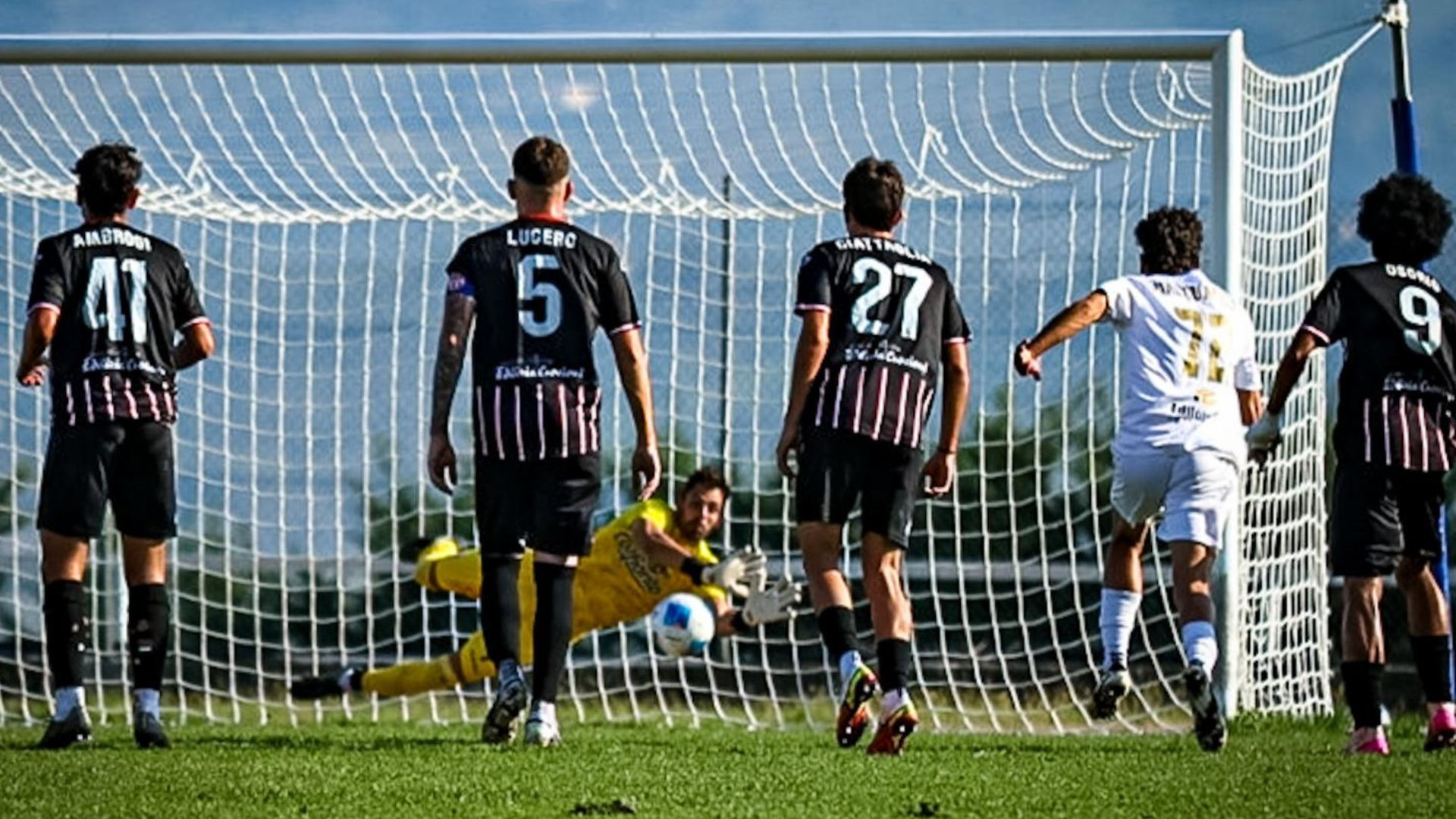 10’ Notaresco in vantaggio: calcio di punizione che sorprende la difesa biancorossa liberando Forcini sulla sinistra. Cross sul primo palo e Paudice anticipa trovando la deviazione vincente.