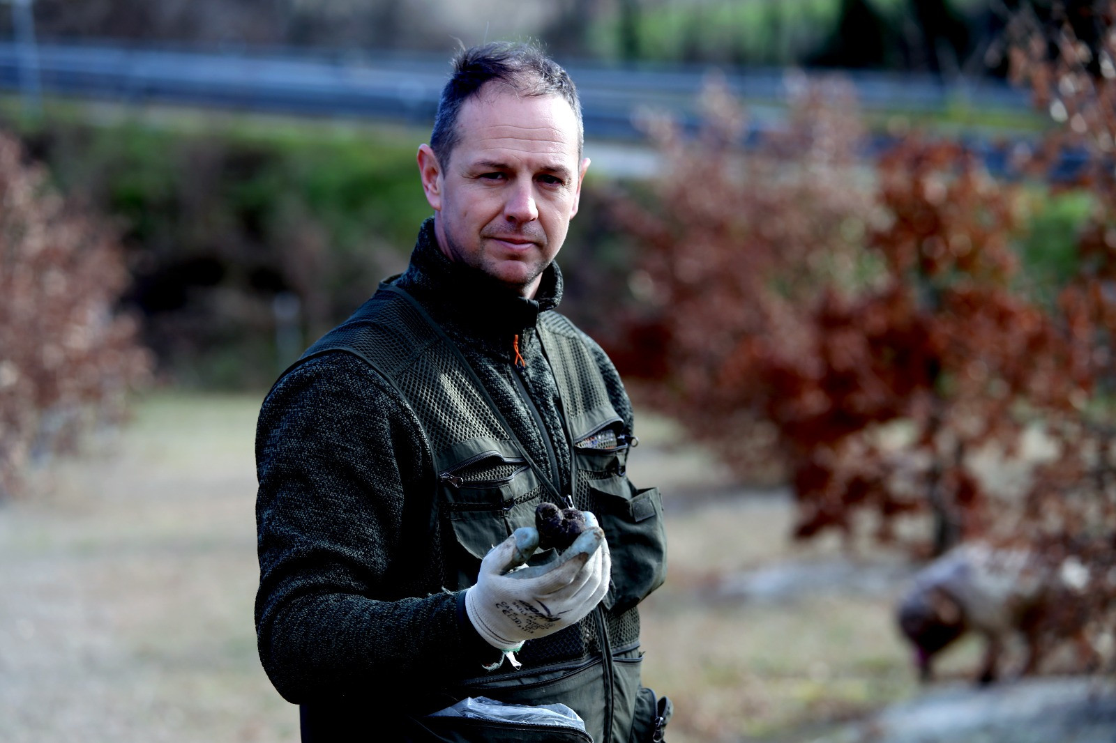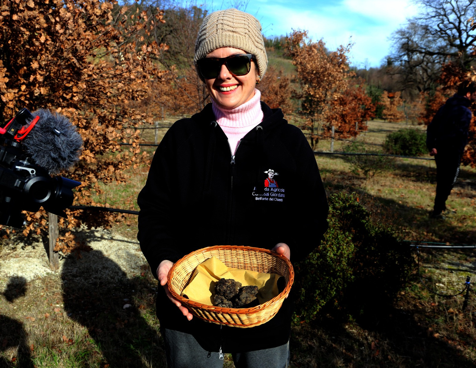 Un ruolo centrale è svolto dalla tartufaia, curata da Leonardo Carassai, fratello di Giordano e tartufaio. Qui nasce il tartufo nero pregiato, prodotto simbolo dell’azienda. "La stagione è iniziata il primo dicembre e finirà il 15 marzo. Siamo a buon punto quindi, abbiamo tartufi molto maturi, molto buoni quest'anno", spiega Leonardo. L'impianto conta circa 600 piante giovani di tartufo nero pregiato, affiancate anche dalla produzione di tartufo scorzone estivo, avviata negli ultimi anni.