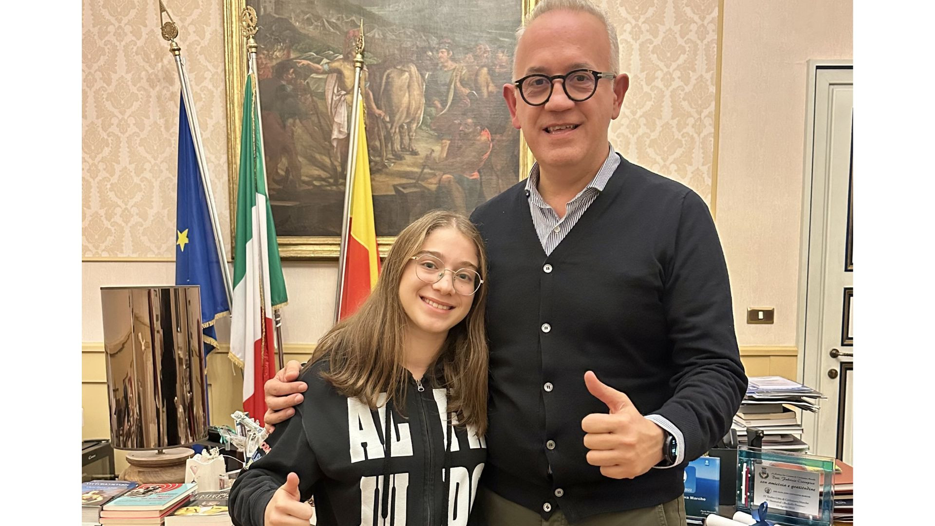 Il sindaco Fabrizio Ciarapica ha ricevuto in Comune la giovane atleta civitanovese Michelle Morbiducci, 14 anni, accompagnata da Angelo Mercanti, presidente dell’associazione Alfa Judo presso la quale Michelle è tesserata e dal padre, dopo il brillante risultato ottenuto ai Campionati Italiani Esordienti B A2 di Judo.