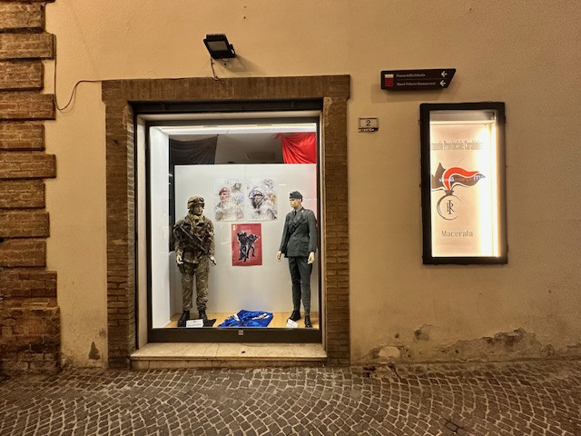 Una vetrina torna in luce grazie alle divise storiche dei carabinieri: Macerata celebra il 4 novembre